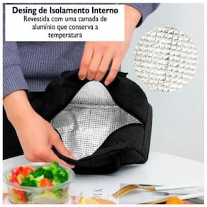 Bolsa térmica marmita lancheira feminina masculina lunch bag Cor: preto Descrição: Bolsa lancheira térmica moderna e sofisticada
