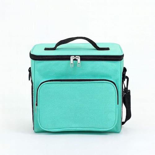 Bolsa Térmica Média Portátil Verde A Bolsa Térmica Média Portatil é o item ideal para conservar e transportar suas refeições e bebidas mantendo elas na temperatura correta. Pode ser levada para diversos lugares como trabalho, viagem, academia, passeios e entre outros lugares onde não terá como refrigerar seu alimento. Possui 4 divisórias (02 redes laterais, um bolso com ziper na frente e 01 compartimento térmico) para que você possa guardar seus itens e alimentos. Seu design é composto por uma alça resistente que garante segurança ao transportar sua lancheira.