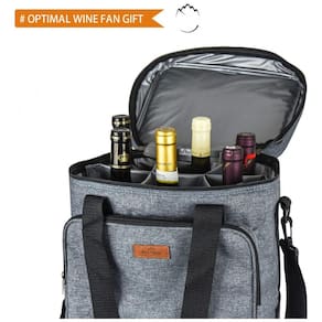 CONVENIENTE, bem como SMART LAYOUT Feito de poliéster 300D Plus de alta qualidade para garantir a máxima durabilidade para um toque de elegância. Apresenta uma faixa de ombro ajustável e também removível, além de faixas de mão acolchoadas para vários estilos de transporte. PAINEL DIVISÓRIO DESTACÁVEL O painel divisor interno acolchoado mantém 6 recipientes de vinho diferentes e evita que desmoronem uns com os outros. Também é removível garante que sua garrafa caberá independentemente do tamanho, você pode usar a bolsa de vinho como uma bolsa térmica protegida para passear ou carregar água, bebida ou cerveja PROTETOR DE VINHO DURÁVEL A alça forte, o enchimento de espuma PE de e o produto com isolamento térmico protegem seus recipientes de vinho contra colisões externas e também a alça de ombro ajustável o tornam o melhor porta vinhos para atividades externas. Ótimo para transportar vinho para eventos, jantares vínicos, estabelecimentos gastronômicos, festas na piscina ou no litoral, passeios, apresentações e também para ocasiões de exibição. Coloque o seu vinho neste saco e comece a sua viagem à vontade e mantenha 6 recipientes de vinho intactos ÓTIMO PRESENTE DE FÃ DE VINHO Certamente emocionará também um conhecedor de vinhos difícil de agradar. O exterior bonito é elegante sem ser exigente, enquanto o design clássico da bolsa funciona bem para mulheres ou homens que gostam de vinho. presente para eles
