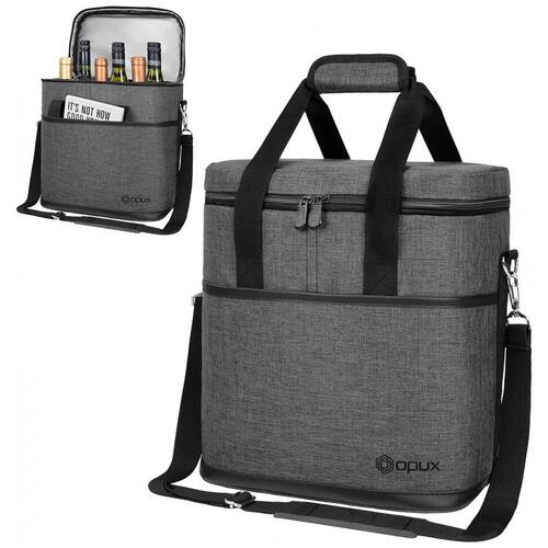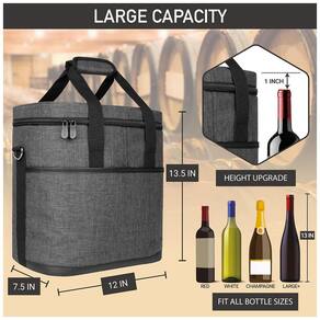 SACO DE VIAGEM PORTÁTIL PARA VINHO Leve suas garrafas de vinho favoritas com você para um restaurante, ao ar livre, parque, praia, jantar ou festa. Também é um ótimo presente para amantes de vinho e anfitriãs presentes. PROTEÇÃO DA GARRAFA DE VINHO E CONTROLE DE TEMPERATURA Forro acolchoado à prova de vazamentos para evitar que as garrafas quebrem durante a viagem, enquanto seu material de isolamento térmico mantém a temperatura do seu vinho estável se estiver refrigerado ou em temperatura ambiente DESIGN CONVENIENTE E INTELIGENTE Apresenta uma alça de ombro ajustável e destacável junto com alças de mão acolchoadas para diferentes estilos de transporte. A aba interior versátil garante que suas garrafas de vinho caibam independentemente do tamanho e oferece proteção acolchoada na divisória. Bonito e durável Feito de poliéster 600D de alta qualidade para garantir máxima durabilidade e acabamento em couro PU para um toque de elegância. Esta bolsa de vinho é clássica e elegante. É um presente de vinho perfeito, presente de aniversário ou presente de dia dos pais