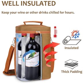 PRESENTE IDEAL PARA AMANTES DO VINHO Se você é um amante do vinho que gosta de levar vinho para o exterior, como restaurantes BYOB, festas em casa de amigos, degustações de vinho, piqueniques no parque, navio de cruzeiro, viagens e quer algo para manter o vinho gelado, você pode não perca o tote do presente do vinho. Aparência elegante e design prático tornam a bolsa de presente de vinho adequada para todos os amantes de vinho de idade. para suas famílias, amigos, namorada e colegas de trabalho em quaisquer eventos ou festivais, como aniversário, casamento, dia de Natal, Dia de Ação de Graças TECIDO ACOLCHOADO ISOLADO O material com isolamento térmico PU e o enchimento de espuma PE de protegem suas garrafas de vinho contra colisões externas, mantêm 4 garrafas de vinho intactas e bem geladas por horas. VISUAL ESTILOSO E TECIDO PREMIUM Bolsa de presente Tirrinia para 4 garrafas de vinho com um design bem bonito e elegante, adequado para pessoas de todas as idades e ambos os sexos. O tecido da superfície é feito de poliéster 600D, resistente e durável. Jogue fora aqueles sacos de presente de vinho de serapilheira, papel frágil Escolha a sacola de vinho Tirrinia para transportar seu vinho ou outras bebidas de forma mais segura e elegante. VERSÁTIL O divisor interno acolchoado com 2 cintos de fixação pode manter 4 garrafas de vinho separadas e evitar que batam umas nas outras. Além disso, você pode usar a sacola de presente de vinho como uma bolsa térmica isolada para piquenique ou viagem ao retirar a divisória