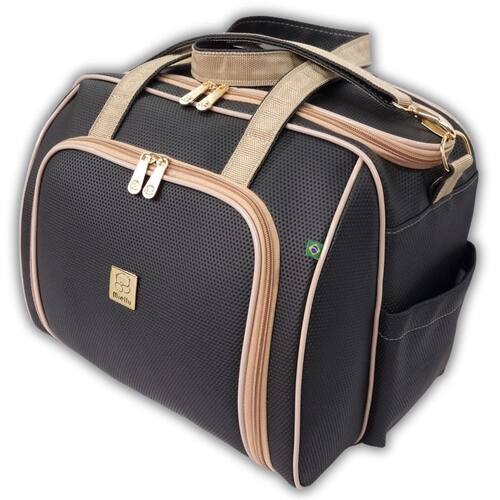 = interior - internamente forrada em bagum branco, garantindo higiene, facilidade de limpeza e durabilidade, sem agregar peso a bolsa. - elasticos para facilitar a organização