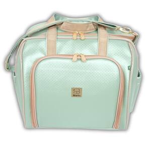 = interior - internamente forrada em bagum branco, garantindo higiene, facilidade de limpeza e durabilidade, sem agregar peso a bolsa. - elasticos para facilitar a organização