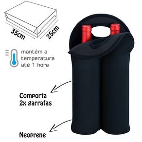Apresentando o Porta-Garrafa Térmico em Neoprene para 2 garrafas, a solução ideal para manter suas bebidas favoritas na temperatura perfeita enquanto você aproveita seus momentos especiais.