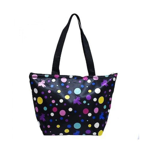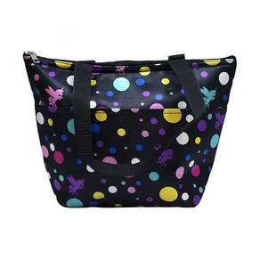 Bolsa térmica preta estampada com várias bolas coloridas e unicório. O acabamento é diferenciado, estiloso e com um desenho detalhado. Uma ótima companhia para o seu churrasco. Parede da bolsa com camada grossa de isolante térmico. Vem com zíper. Deixar o seu churrascão mais legal é só na Fings Store.