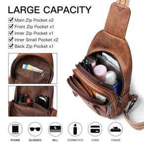 - ?Material premium?Nossa nova bolsa transversal feminina é feita de couro sintético premium, o corpo da mochila peitoral e as alças de ombro são reforçados com costura resistente para durabilidade. Um orifício para fone de ouvido no bolso traseiro permite que você curta música facilmente.