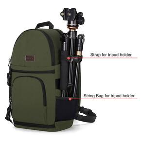 - A camada de espuma macia envolvida pode proteger bem sua câmera e acessórios de choques acidentais e arranhões. Separada em 2 partes: a caixa de armazenamento inferior maior (dimensão interna: 25,7 x 20 x 11 cm) é separada com inserções modulares removíveis para caber em várias lentes e unidades de flash; partes superiores para acessórios necessários. O suporte de tripé é apresentado em um lado. 1 bolso oculto com zíper antirroubo na parte de trás para seus itens preciosos.
