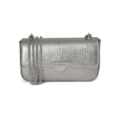 Bolsa Tiracolo Crossbody Snake Via Marte Alça Corrente Ajustável B1-163 - Prata - Único
