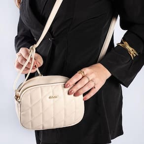 O visual minimalista da bolsa é realçado pelo detalhe de matelassê na parte frontal, conferindo um toque de elegância e modernidade. Além disso, a peça metalizada com o logo da marca adiciona um charme extra, tornando-a funcional e também uma expressão de estilo. Com medidas de 18 x 15 x 6 cm e um peso leve de 0.244 kg, a bolsa Dakota é a companhia ideal para quem busca praticidade, conforto e um toque fashion para qualquer ocasião.