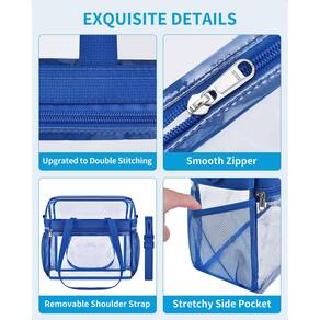 Bolsa transparente versátil e elegante para eventos em estádios – a companhia perfeita para qualquer ocasião! Esta bolsa transparente não apenas atende aos regulamentos do estádio, mas também se encaixa perfeitamente na praia, escritório, almoços casuais, shows, jogos esportivos, festivais e sua próxima aventura de viagem. Esta bolsa transparente para estádio é feita com material de PVC à prova d'água, mantém seus pertences seguros e secos, mesmo na chuva. As dimensões espaçosas de 30 x 15 x 30 cm oferecem muito espaço para todos os seus itens essenciais, atendendo a homens e mulheres. Projetado com a conveniência em mente, possui um fecho de zíper seguro, um bolso frontal para acesso rápido e alças confortáveis para facilitar o transporte manual. A alça de ombro transversal removível adiciona um toque de versatilidade às suas opções de transporte. Se você precisa de um presente atencioso, um organizador eficiente ou uma bolsa de fraldas elegante, esta bolsa de plástico transparente é uma escolha prática e moderna para adultos ocupados em movimento. Mantenha-se organizado e à frente das tendências com esta bolsa transparente que combina perfeitamente moda com funcionalidade. - Aprovada pelo estádio: a bolsa transparente para eventos em estádios está em conformidade com o padrão de política de bolsas transparentes de 30 x 30 x 15 cm e é completamente transparente em todos os lados (incluindo a parte traseira e a parte inferior) para facilitar as verificações de segurança. - ?Material de longa duração? - Feita de PVC resistente à água, a bolsa transparente é grossa o suficiente para carregar cargas pesadas, e todas as costuras foram atualizadas para costura dupla para resistir a rasgos. - Grande capacidade: a bolsa transparente para estádio mede 30 x 15 x 30 cm e é grande o suficiente para guardar uma câmera digital, laptop, iPad, fraldas, pastas e muito mais, além de um bolso para acessórios e 2 bolsos laterais. - ampla variedade de usos: versátil e potente, esta bolsa transparente para mulheres pode ser usada como uma lancheira transparente ou uma bolsa de fraldas transparente, tornando-a uma companhia confiável para shows, festivais, viagens, trabalho ou eventos esportivos. - ?Bolsa transparente para estádio?As alças a tornam facilmente portátil, muito resistente e com bom tamanho de 30 x 15 x 30 cm, adequada para eventos esportivos, shows, aeroportos, estádios, trabalho, viagens, praia, festivais e uso diário.