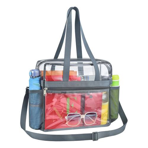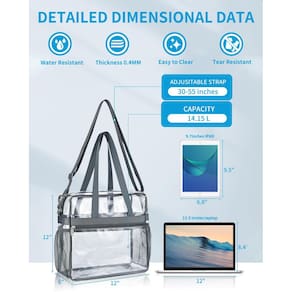 Bolsa transparente versátil e elegante para eventos em estádios – a companhia perfeita para qualquer ocasião! Esta bolsa transparente não apenas atende aos regulamentos do estádio, mas também se encaixa perfeitamente na praia, escritório, almoços casuais, shows, jogos esportivos, festivais e sua próxima aventura de viagem. Esta bolsa transparente para estádio é feita com material de PVC à prova d'água, mantém seus pertences seguros e secos, mesmo na chuva. As dimensões espaçosas de 30 x 15 x 30 cm oferecem muito espaço para todos os seus itens essenciais, atendendo a homens e mulheres. Projetado com a conveniência em mente, possui um fecho de zíper seguro, um bolso frontal para acesso rápido e alças confortáveis para facilitar o transporte manual. A alça de ombro transversal removível adiciona um toque de versatilidade às suas opções de transporte. Se você precisa de um presente atencioso, um organizador eficiente ou uma bolsa de fraldas elegante, esta bolsa de plástico transparente é uma escolha prática e moderna para adultos ocupados em movimento. Mantenha-se organizado e à frente das tendências com esta bolsa transparente que combina perfeitamente moda com funcionalidade. - Construção durável: Feito de plástico PVC extra durável com tiras de nylon para alça de ombro e alças para resistência ao frio. - Aprovada pelo estádio: a maior bolsa transparente de estádio de 30 x 30 x 15 cm com alças removíveis e bolso de malha para garrafa de água. - Design confortável: alça de ombro removível ajustável de 76 a 139 cm com alças de 66 cm de comprimento e 2 bolsos laterais de malha. - Uso versátil: perfeita para lancheira transparente, bolsa de fraldas, bolsa de praia, bolsa de enfermeira, bolsa de escritório, eventos esportivos, shows e muito mais. - Fácil manutenção: o design simples e o material à prova d'água facilitam a limpeza com sabão e água para limpeza rápida.