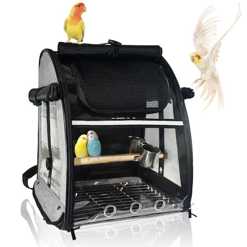 -?TAMANHO E COMPATIBILIDADE IDEAIS?Medindo 12,9" L x 10,4" L x 16,1" H, esta mochila transportadora de pássaros serve como uma gaiola de viagem ideal para a maioria dos pássaros de estimação, adequada para calopsitas, conures, quacres, caciques, mini araras, periquitos, cacatuas pequenas, lóris e outros papagaios de tamanho semelhante.
