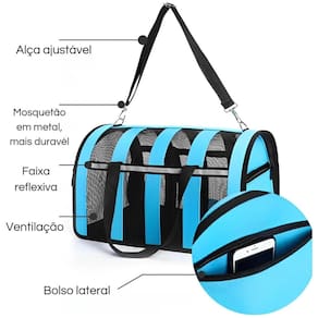 A bolsa possui faixa refletiva que garante boa visibilidade a noite e em lugares escuros, garantindo segurança ao transportar seu animal de estimaçao.