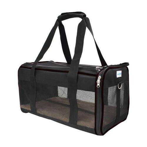 Características do Produto: - Confeccionada nas especificações para embarque na cabine de aviões da maioria das companhias aeras. - Acomoda confortavelmente pets de até 10kg; - Aberturas frontal e lateral que facilitam a entrada e saída do Pet; - Fundo interno rígido removível, fácil de higienizar; - Alta qualidade de fabricação e detalhe; - Super arejada, confeccionada com tela de alta resistência nas laterais e topo; - Totalmente dobrável e fácil de guardar.