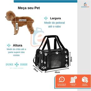 Características técnicas: Dimensões da bolsa: 28cm altura x 28cm largura x 43cm comprimento Dimensões do Tapete: 24cm x 43cm Peso suportado: Até 14kg Material: Tecido Oxford e Poliéster Peso do produto: 1kg Indicado para: Cães e Gatos Marca: Duke e Dixie