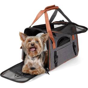 Bolsa Transporte Pet Luxo Grande Cães Gatos Carro Avião Bolsa de viagem pet luxuosa e elegante com detalhes em couro PU. Esta linda bolsa de transporte para cães e gatos possui telas de ventilação na frente, atrás, em cima e nas laterais o que faz com que seu animal descanse em um ambiente ventilado e confortável. Possui também tapetinho peluciado no fundo que garante maior conforto na viagem do seu pet. Esta bolsa para carregar pets é produzida em nylon oxford e poliéster taffeta e possui detalhes e acabamento em couro PU, materiais de alta qualidade e resistência, é também uma bolsa pet impermeável. Além disso, vem com uma alça fixa com detalhe em couro PU e uma alça removível, ambas com estofamento na parte de carregar com as mãos ou no ombro, o que garante conforto também para o dono do pet. Essa mochila pet possui alguns diferencias bem atrativos, você pode encaixa-la com a alça da sua mala sendo mais uma forma de carregar a sua bolsa, para carregar no carro ela vem com fechos na parte de trás que permitem que você fixe a mochila ao cinto de segurança do carro, elá vem com TAG de identificação para colocar os dados de informações do seu pet como uma medida de segurança, possui ganchos de metais e fechos de alta resistência, tem abertura com zipper na parte de trás se durante a viagem você necessitar dar um biscoito ou ao seu pet, é uma bolsa pet dobrável, fácil de carregar e guardar. Descrição do produto: - Material: Nylon oxford, poliéster taffeta e couro PU de alta qualidade. - Possui alça fixa e alça removível com estofamento na parte de carregar. - Possui 2 bolsos externos e uma abertura com zipper na parte de trás. - Material impermeável, resistente a água. - Possui alça atrás para encaixar com a alça da mala do dono. - Possui 2 fivelas na parte de trás para encaixar com o cinto de segurança do carro. - Bolsa dobrável e fácil de guardar. - Acompanha tapete peluciado. - 30cm altura x 27cm largura x 48cm comprimento. - Peso máximo suportado: 8kg. OBSERVAÇÃO: as medidas são feitas manualmente, por se tratar de fabricação podem ter pequenas oscilações. Somos importadores diretos, selecionamos criteriosamente nossos produtos e os mesmos passam por um rigoroso controle de qualidade. Temos disponíveis todos os nossos produtos, após a confirmação de pagamento o envio é rápido e imediato. Fique a vontade para perguntar e tirar todas as suas dúvidas antes de efetuar a compra, será um prazer atendê-lo. Para nós da equipe Ninabag a sua satisfação é a nossa realização. COD: MP47-1
