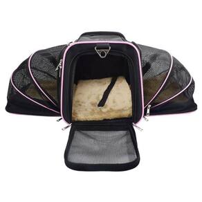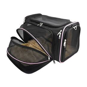 Bolsa Transpote para Pet Expnsível Viagem A Bolsa PET Transporte é confeccionada em material resistente; costura de alta qualidade com zíperes no acabamento. Suas entradas laterais fornecem uma ventilação saudável que permite manter contato visual com seu PET. acompanha um tapete macio para garantir o transporte no conforto ideal Carregue o seu PET facilmente pelas alças curtas ou pendure no ombro com a alça comprida. E se preferir encaixe na mala de mão de forma conveniente durante sua viagem Dimensões da Bolsa: 44,5cm X 25,4cm X 25,4cm, Expansível até 73,66cm. Dimensões do Tapete: 43,18 cm X 24,13cm Características do Produto: - Confeccionada nas especificações para embarque na cabine de aviões da maioria das companhias aeras. - Acomoda confortavelmente pets de até 14 kg; - Aberturas frontal e lateral que facilitam a entrada e saída do Pet; - Fundo interno rígido removível, fácil de higienizar; - Alta qualidade de fabricação e detalhe; - Super arejada, confeccionada com tela de alta resistência nas laterais e topo; - Totalmente dobrável e fácil de guardar.