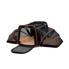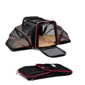 Bolsa Transpote para Pet Expnsível Viagem A Bolsa PET Transporte é confeccionada em material resistente; costura de alta qualidade com zíperes no acabamento. Suas entradas laterais fornecem uma ventilação saudável que permite manter contato visual com seu PET. acompanha um tapete macio para garantir o transporte no conforto ideal Carregue o seu PET facilmente pelas alças curtas ou pendure no ombro com a alça comprida. E se preferir encaixe na mala de mão de forma conveniente durante sua viagem Dimensões da Bolsa: 44,5cm X 25,4cm X 25,4cm, Expansível até 73,66cm. Dimensões do Tapete: 43,18 cm X 24,13cm Características do Produto: - Confeccionada nas especificações para embarque na cabine de aviões da maioria das companhias aeras. - Acomoda confortavelmente pets de até 14 kg; - Aberturas frontal e lateral que facilitam a entrada e saída do Pet; - Fundo interno rígido removível, fácil de higienizar; - Alta qualidade de fabricação e detalhe; - Super arejada, confeccionada com tela de alta resistência nas laterais e topo; - Totalmente dobrável e fácil de guardar.