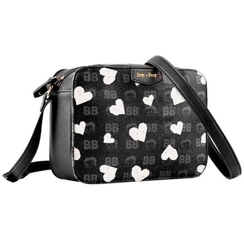 01 un - Bolsa Transversal BETTY BOOP Preto e Coração Branco - Semax.