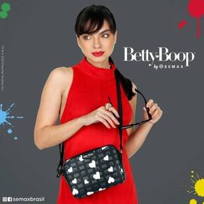 Bolsa Transversal Betty Boop Preta Coração Branco - Semax