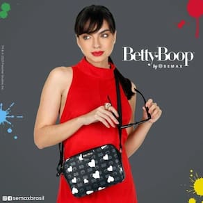 Contém: 01 un - Bolsa Transversal BETTY BOOP Preto e Coração Branco - Semax.