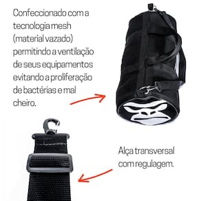 Com dimensões de 50x30x30 cm, essa bolsa possui um corpo confeccionado com a tecnologia mesh, um material vazado que permite a ventilação dos seus equipamentos, evitando a proliferação de bactérias e o mau cheiro. Além disso, as alças são feitas em nylon trançado, proporcionando maior durabilidade ao produto.