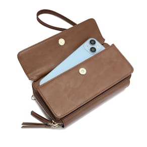 Pequena bolsa transversal vegana projetada para mulheres ocupadas em fuga, também é o acessório de viagem perfeito para qualquer mulher que esteja procurando uma bolsa de tamanho pequeno, leve e elegante. A bolsa transversal para celular possui vários compartimentos com muitos compartimentos para cartões para uma organização eficiente. Ela vem com uma alça curta e uma alça longa, permitindo que seja usada como uma cruz ou uma bolsa clutch Além disso, bolsa carteiro de ombro com proteção RFID antirroubo, tornando-a mais segura para uso diário e/ou viagens. - Feita de couro vegano macio. Zíperes e fecho magnético. - Bolsa transversal tudo em um: bolso frontal para celular e organizador tipo carteira com zíper duplo de grande capacidade. 12 compartimentos para cartões, 2 compartimentos longos para notas, 1 bolso com zíper para moedas, 3 compartimentos. Adapta-se ao seu celular, papel guardanapo, batom, rímel, moedas, cartões de crédito, identidade, passaporte, chaves ou algumas outras pequenas necessidades. - Bloqueio RFID: a mini bolsa transversal oferece proteção RFID para evitar que seus cartões de crédito e débito sejam escaneados e roubados - Dimensões: 19 cm (C) x 10 cm (A) x 6,3 cm (L). Serve para a maioria dos celulares de até 18 cm com capa fina para celular. - Multiuso: com alça longa removível de 62 a 83,8 cm e alça de pulso removível de 18 cm, você pode usá-la como carteira ou como bolsa de mão ou tiracolo