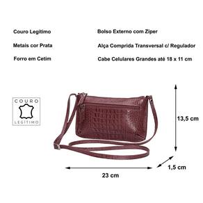 Bolsinha estruturada, pequena, mini, compacta, básica, feminina, transversal ou tiracolo em couro, com alça comprida para uso transversal ou tiracolo lateral com regulagem de tamanho / altura. Metais na cor prata. Pode ser usada no dia a dia ou como uma peça curinga para finalizar seu look em seus eventos casuais, festinhas e baladas. O forro é confeccionado em cetim com texturas variadas tipo 'animal print' (padrão oncinha) ou similar, que valorizam ainda mais o produto. Possui 1 bolsinho externo fechado com zíper para organizar pequenos objetos. O fechamento da parte superior principal é em ziper de nylon que proporciona um fácil deslize e segurança aos seus objetos.