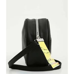 Bolsa feminina, modelo transversal, confeccionada em material sintético. Possui repartição única com fechamento por zíper, estampa frontal Snoopy, bolso externo, alça transversal ajustável e sem remoção, forro em tecido, acabamento e costura no tom.
