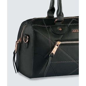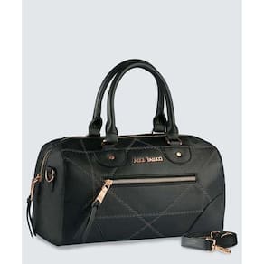 Bolsa feminina, modelo de mão, confeccionada em material sintético. Possui repartição única com fechamento por zíper, alça de mão dupla, alça transversal ajustável e removível, forro em tecido, acabamento e costura no tom.