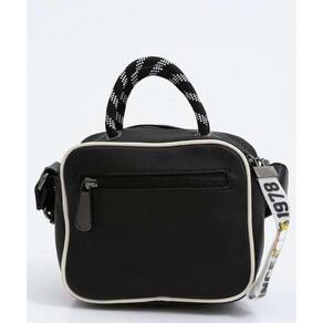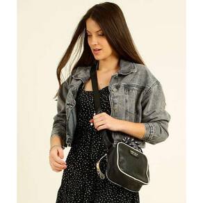 Bolsa feminina, modelo transversal, confeccionada em material sintético com recorte. Possui repartição única com fechamento por zíper, alça ajustável e removível, alça de mão dupla, bolso externo e interno com zíper, forro em tecido, acabamento e costura no tom.