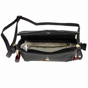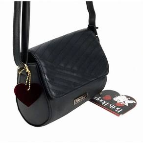 possui alça transversal regulável. Na parte frontal possui acabamento em matelassê com o nome Sassy Love da Coleção gravado e emblema metálico dourado e preto gravado o nome Betty Boop. Abertura principal por aba com fecho magnético e zíper com puxadores dourados e personalizados com corações. Ferragens douradas. Forro interno personalizado na cor bege. Bolso interno com zíper, porta celular e porta documentos. Material: 100% PVC Forro: 100% Algodão Medidas aproximadas: Altura 17 cm Largura 23 cm Profundidade 10 cm