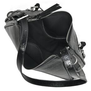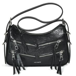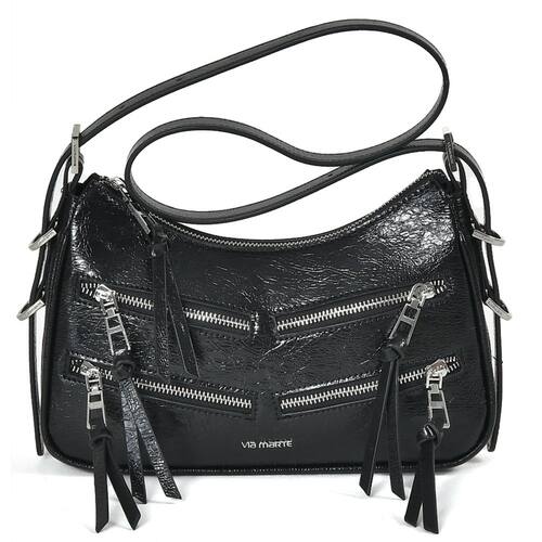 Bolsa shoulder feita em PU crinkle com brilho. Alça de ombro com ajuste de tamanho por fivelas de metal com logo via marte, podendo ser usada como tiracolo. Detalhes frontais de zíperes. Abertura com zíper de metal e puxador com logo via marte e detalhe de pu. Peça forrada com bolsos internos sendo um de zíper. Logo frontal de metal.