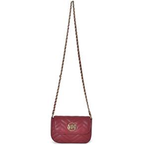 Bolsa Crossbody mini em PU com detalhes em matelassê geométrico. Design retangular com bordas arredondadas e alça de corrente fixa. Fechamento com tampa e botão magnético. Inclui bolso interno no forro, ideal para itens pequenos. Perfeita para adicionar elegância a qualquer look. Placa frontal VM de metal circular.