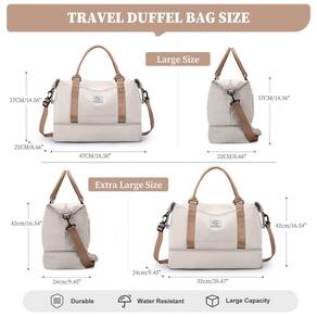 Bolsas femininas de fim de semana - Bolsa de mão extragrande: o tamanho desta bolsa de fim de semana para mulheres é de 52 × 24 × 16,54 cm e está em conformidade com a maioria dos requisitos internacionais de bagagem de mão. Capacidade aumentada em 36% do que o tamanho grande, a grande capacidade de tamanho é de 38 L, o tamanho extra grande é 52 L - Compartimento para sapatos e bolsa de higiene: as bolsas de viagem para mulheres têm um compartimento separado na parte inferior para sapatos e roupas sujas. E equipada com uma bolsa de higiene, tamanho: 9,4 × 3× 15,5 cm - Bolso molhado e manga de carrinho: esta bolsa esportiva oferece um bolso forrado de PVC à prova d'água com zíper para roupas molhadas ou toalhas e maiôs. A manga de carrinho embutida desliza na alça de bagagem, economizando esforço e facilitando a movimentação - Vários bolsos de grande capacidade: a bolsa noturna oferece um interior espaçoso para carregar todos os seus itens essenciais de viagem para uma viagem de 3 a 11 dias. A bolsa de viagem possui 9 bolsos que ajudam você a embalar com mais eficiência, mantendo seus itens essenciais organizados - Bolsa multifuncional de fim de semana: perfeita para uso diário, academia, viagens, pernoite ou bagagem de mão. Adequada para bolsa de viagem, bolsa de mão, bolsa noturna, bolsa esportiva, bolsa de fim de semana, bolsa de itens pessoais, bolsas esportivas de academia