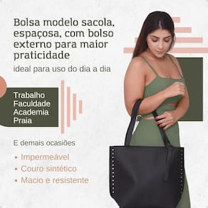 Um Pouco Sobre Nossa História. - A empresa Santucci foi fundada em 2020 durante a pandemia, com o propósito de fornecer bolsas de alta qualidade e design exclusivo para o público feminino. Destaca-se no mercado pela dedicação em oferecer produtos que combinam elegância, praticidade e sofisticação, conquistando a confiança das clientes e tornando-se uma referência no segmento de acessórios femininos. Sua missão é inspirar as mulheres a expressar sua personalidade e estilo por meio de bolsas que unem design, qualidade e funcionalidade. Os valores fundamentais da marca incluem ética, transparência, inovação e respeito ao meio ambiente, demonstrando seu compromisso com o bem-estar das clientes e a sustentabilidade. - Bolsa modelo sacola, espaçosa, com bolso externo para maior praticidade, ideal para uso do dia a dia trabalho, faculdade, academia, praia e demais ocasiões . - Confeccionada em material sintético, macio, resistente, impermeável e com a melhor qualidade do mercado. - Ficha técnica do produto: Altura: 30cm Largura: 40cm Profundidade: 12cm Alça: 26cm Fechamento: Zíper Material: Altar sintético - Estamos à disposição para tirar todas as dúvidas. Marca: Não Informado