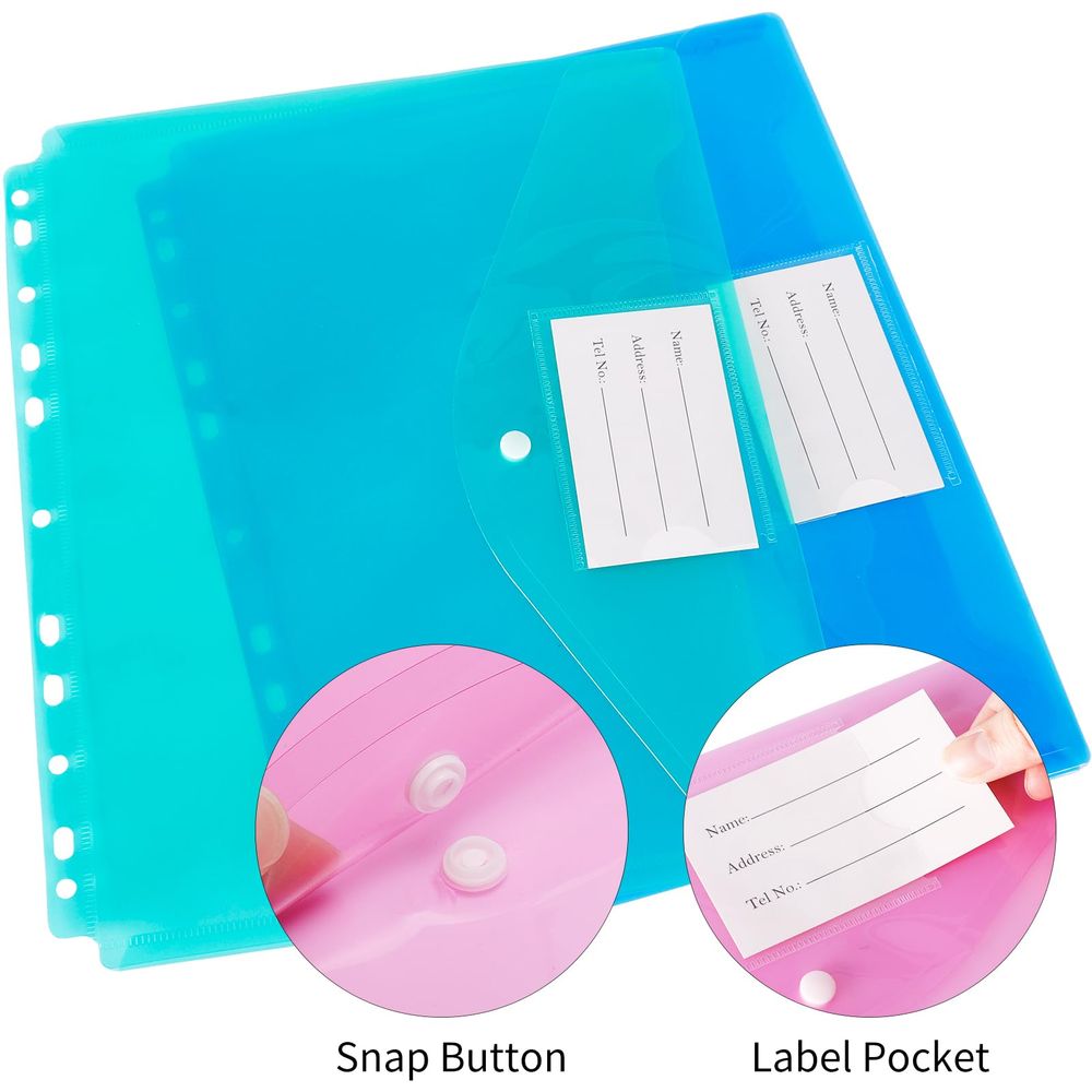 Especificações do produto Número de produtos: 30 peças no total por grupo. Cor do produto: azul*5, roxo*5, amarelo*5, rosa *5, laranja*5, verde*5 Tamanho do produto: tamanho do envelope, 29,5 x 24,5 cm, maior espaço de armazenamento Características do produto: feito de plástico PP de alta qualidade, durável, resistente ao desgaste e à prova d'água. Desta forma, você não precisa se preocupar com acidentes como chuva ou derrubar copos de água. O design do bolso da etiqueta permite que você marque como quiser. Garantia de serviço: se você tiver alguma dúvida sobre nossos cadernos ou estiver interessado em algum produto da marca EOOUT você pode entrar em contato conosco a qualquer momento e responderemos dentro de 24 horas. desejo-lhe uma vida feliz. - O produto inclui: 30 bolsos para fichário em 6 cores. - Tamanho do produto: 11,6 x 9,64 polegadas (29,5 x 24,5 cm), tamanho de envelope de carta padrão. Desta vez, atualizamos o tamanho da pasta de fichário da EOOUT, a largura aumentou em 11%, comporta até 50 folhas de papel, atende às suas necessidades de grande capacidade. - Material bruto de qualidade premium: a bolsa para fichário da EOOUT é feita de material bruto de PP de qualidade premium, com cor pura, resistente e à prova d'água e protege efetivamente todos os seus objetos. - Design detalhado: esta pasta tem um design de 11 furos, adequado para a maioria dos fichários e se adapta aos hábitos americanos. Adicionamos um bolso de etiqueta à capa de encaixe, você pode adicionar uma marca ao usá-la, para que possa visualizar e encontrar rapidamente o conteúdo. - Várias aplicações: nossas sacolas plásticas são fáceis de transportar e podem manter seus pertences em ordem. Eles podem ser utilizados para armazenar contas, documentos, papéis, etc. Também pode ser utilizado para armazenar artigos de papelaria, viagens, etc.