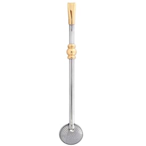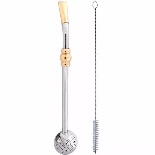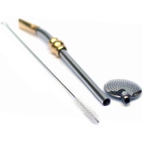 Desfrute seu chimarrão com qualidade, sabor e tradição! #Anel Superior Com Detalhe Circular #Banhada a Ouro 18 Quilates #Possui Bojo Removível Garantia: 10 Anos / Conteúdo: 1 Bomba para chimarrão Aço Inox e 1 Escovinha para Higienização / Peso: 105g / Cor: Inox e Ouro / Ref: D258 Dimensões Bomba: 4,3cm (C) x 2,5cm (L) x 25cm (A) Dimensões Escova: 2cm (C) x 2cm (L) x 25cm (A) Cuidados: Não lavar com materiais abrasivos. Após o uso lavar com esponja macia e sabão neutro, guardar o produto seco. Acompanha: Escovinha para higienização Material: - Ouro 18 Quilates: O bocal da bomba e o anel superior são banhados a ouro 18 quilates; - Aço inox 304: Material de alta resistência, não enferruja, não transfere odor e nem gosto. Garantia de 10 Anos: Se lavado somente com água corrente, sem materiais abrasivos ou palha de aço, a bomba terá longa vida útil e 10 anos de garantia contra oxidação. Luxo, tradição e qualidade na sua roda de chimarrão e tereré! Produzida em aço inox 304, é extremamente resistente à corrosão e sendo tomados todos os cuidados indicados, sua garantia chaga até 10 anos. A bomba é banhada a ouro 18 quilates, junto com ela você também receberá uma escova para higienização interna. A bomba é muito fácil de limpar, seu bojo tem formato tradicional, porém é removível, facilitando a limpeza.