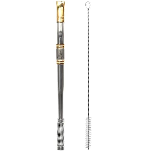 Bomba perfeita para chimarrão e tereré. Ideal para quem não vive sem seu mate, seja em passeios no parque ou regando uma boa conversa com amigos e família. Esta é uma bomba toda detalhada, digna de ser chamada de luxo. Seu bojo é com sistema de mola, este evita entupimentos indesejados e ainda facilita muito na hora da limpeza. A bomba também vem acompanhada de uma escovinha especial para higienização interna. Com esta bomba você terá tradição, qualidade e requinte em um único acessório para chimarrão e tereré, é perfeita para compor sua cuia.