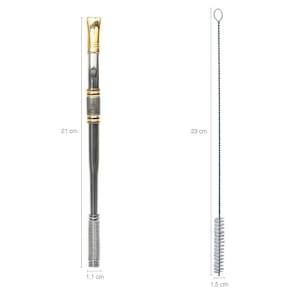 Garantia: 10 Anos / Peso: 070g / Conteúdo: 1 Bomba Chimarrão 18 Quilates e 1 Escovinha para Limpeza / Cor: Inox e Ouro / Ref: MDG202CANOSSASENHORA Dimensões da Bomba: 1,1cm (C) x 1,1cm (L) x 21cm (A) Dimensões da Escova: 1,5cm (C) x 1,5cm (L) x 23cm (A) Cuidados: Não lavar com materiais abrasivos Peça: Com rosca e Banho de ouro Acompanha: 1 Escovinha