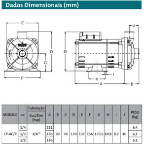 Bomba Centrífuga 1/4CV Monofásica 110/220V CP4R DANCOR