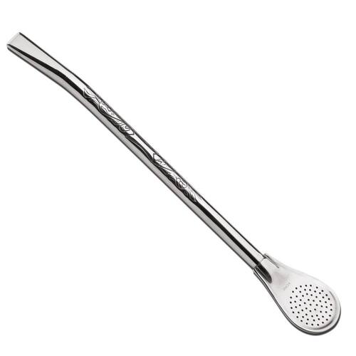 Bomba para chimarrão em aço inoxidável, redonda, com um delicado desenho no corpo do cano. Aproveite o seu chimarrão, mate ou tererê com mais beleza e qualidade. Sua altura é de 19 centímetros.