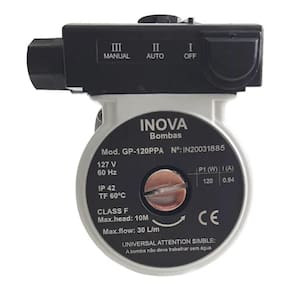Bomba Circuladora GP-120PPA InovaBem Vindo Ao Meu Aquecedor!Aqui você encontra produtos com alta qualidade, você cliente, é muito importante para o desenvolvimento da performance desta empresa, trabalhamos duro para gerar a melhor experiência de compra para você, portanto qualquer sugestão, orientação é muito bem vinda para que possamos alcançar a excelência em nosso atendimento.Tenha confiança ao realizar suas compras conosco, pois estamos prontos para oferecer o atendimento que você merece. Em caso de qualquer problema após a compra, nossa equipe de pós-venda está preparada para auxiliá-lo. Nosso compromisso é garantir a total satisfação do cliente, tanto no atendimento quanto nos produtos oferecidos. Dessa forma, estabelecemos uma relação de confiança com nossos compradores.Sobre O Produto;A bomba circuladora / pressurizadora inova permite aumentar a pressão da água de uma rede hidráulica, possui uma entrada ou tubo que suga a água e posteriormente o líquido é conduzido por um motor em direção ao tubo de saída, isso faz com que a água saia com muito mais pressão e rapidez, não hesite em ver os recursos que este produto oferece pois essa pode ser uma excelente opção para você.Maior potência: graças à sua potência de 120w. Este pressurizador permitirá que você aumente a pressão da água quente ou fria, a um fluxo constante sem dúvida você terá o conforto necessário para realizar suas tarefas diárias.· Utilizada com aquecedores de passagem até 10 litros/min· Fixação direta no aquecedor de passagem· Totalmente silenciosas· Compactas leves e de fácil instalação· Bombas sem selo mecânico· Motor isento de vibrações· Funcionamento automático· Devem ser instaladas abaixo do nível da caixa d’água· GP-120ppa possui material não corrosivo.Dimensões do Produto:- peso: 9 kg- comprimento: 13 cm- largura: 11 cm- altura: 16 cm.Garantia: 2 anos de garantia de fábrica contra defeito de fabricação.