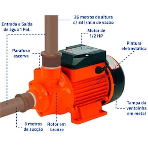 Uma bomba d’água de alta qualidade para efetuar transferência de água limpa e isenta de sólidos de cisternas, rios e reservatórios para o abastecimento de residências, indústrias e no campo em pequenas irrigações.