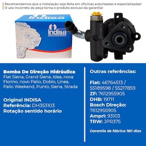 Bomba de Direção Hidráulica Fiat Siena, Grand Siena, Idea, Fiorino, Palio, Doblo, Linea, Palio Weekend, Punto, Siena, Strada, Uno - Indisa