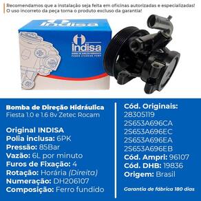 Bomba de Direção Hidráulica Ford Fiesta e Ecosport 1.6 8v Zetec Rocam - Indisa