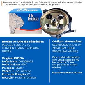Bomba de Direção Hidráulica Peugeot 206 e 207 Citroen Xsara - Indisa