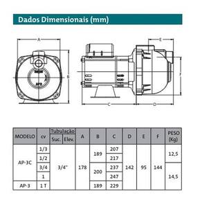 Bomba de Água AP 3C 1 CV Autoaspirante - Monofásica 127/220/254V - Dancor