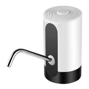 Bomba de água elétrica portátil para galão, com bateria recarregável via USB, compatível com galões de 5L, 10L e 20L. Possui baixo ruído e é feita com materiais seguros como aço inox 304 e plásticos PP, ABS e EVA.Água gelada