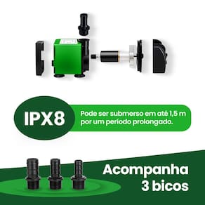 A estrutura da bomba conta com proteção IPX8, o que garante funcionamento submerso seguro em até 1,5 metro de profundidade por períodos prolongados. Sua altura máxima de elevação de 3 metros permite uso em instalações verticais ou com desníveis. A grade de proteção inteligente impede a entrada de partículas maiores, protegendo o motor e aumentando sua durabilidade, enquanto as ventosas de ultra fixação asseguram estabilidade e segurança na instalação.